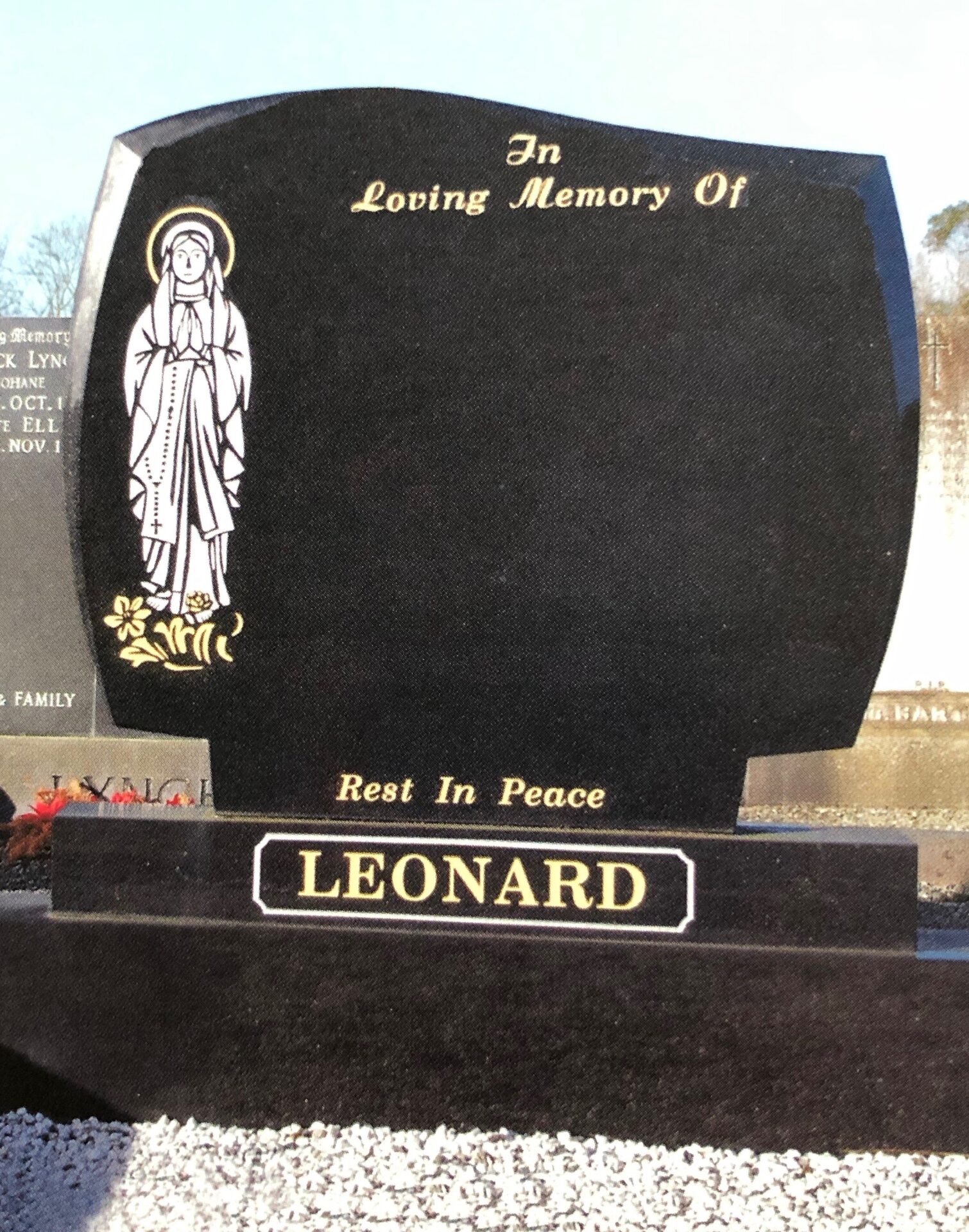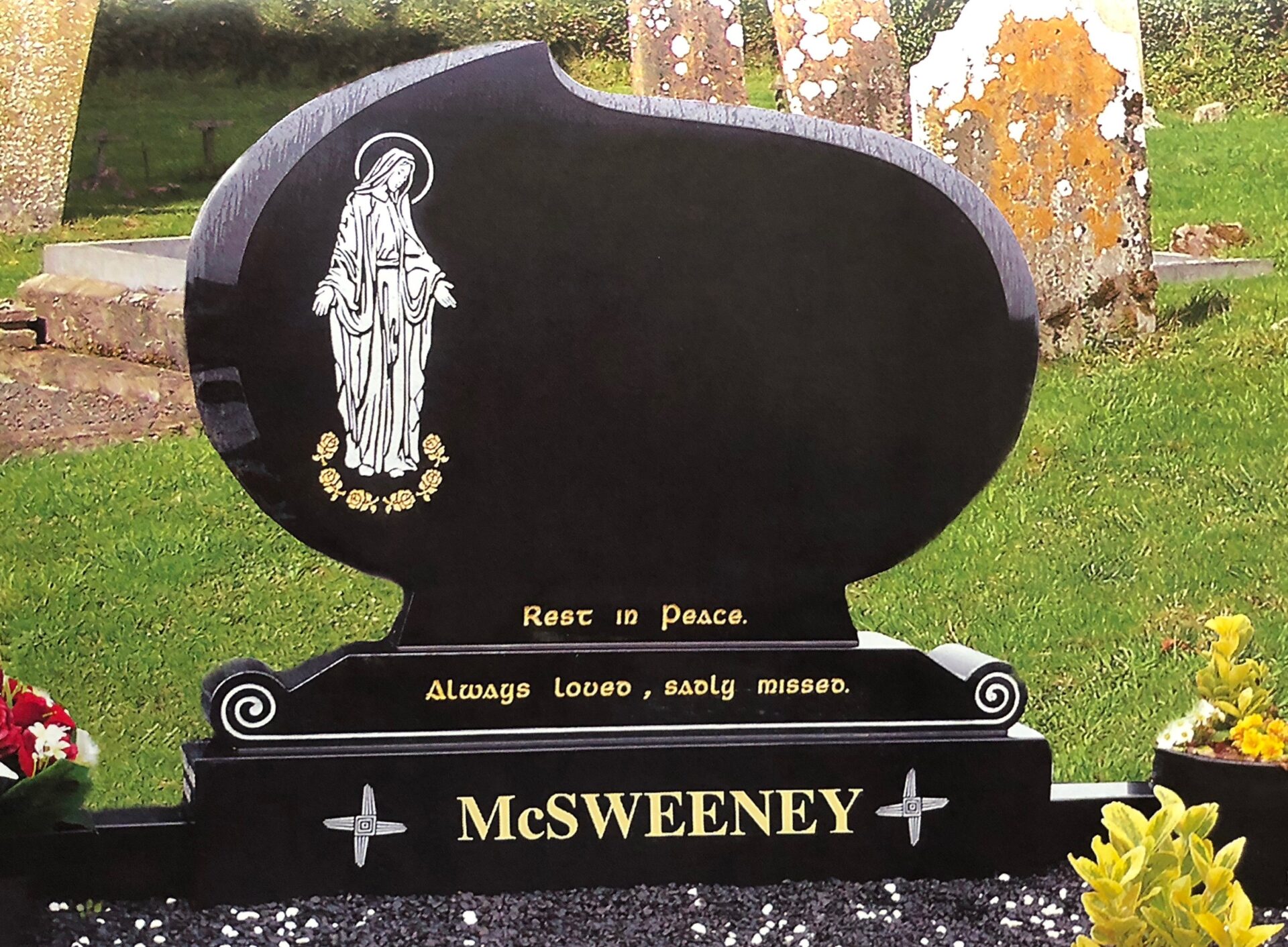 We have a very large range of monuments and stone options, if there is something specfic you would like please contact us and we will let you know where you can see some examples.